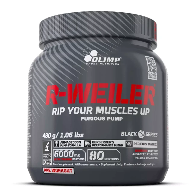 Olimp R-Weiler Powder er en hardcore PWO (Pre-Workout) fra Olimp Sport Nutrition, designet for de som krever absolutt maksimalt utbytte av hver treningsøkt. Denne kraftfulle formelen gir deg en trippel effekt av økt **energi**, skarpere **fokus** og bedre **utholdenhet** og eksplosivitet. R-Weiler er det perfekte tilskuddet til å hjelpe deg over dørstokkmila og inn i den tøffeste økten!