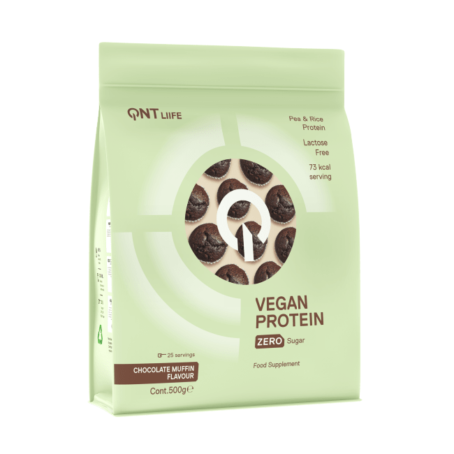 QNT Vegan Protein er det perfekte valget for deg som søker et rent, plantebasert alternativ til tradisjonelt myseprotein, uten å gå på kompromiss med smak eller kvalitet. Med en fristende smak av Chocolate Muffin og en vitenskapelig sammensatt blanding av erte- og risprotein, får du en “shake” som både bygger muskler og smaker som en dessert – helt uten dårlig samvittighet.